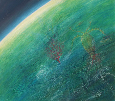 Kunst benutze ich überwiegend, mich mit einer für mich bedeutenden Thematik auseinanderzusetzen. Die Inhalte sind gesellschafts- und umweltkritisch, Stimmungen und themenbezogene Bilder wie Verletzungen, Urbanität, Metamorphosen, Genesis, Elemente. Neben freien abstrakten Form- und Farbwelten, die sich während des Entstehungsprozesses entwickeln, stehen feste Bildkompositionen. Meine Darstellungen sollen sensibilisieren, Bewußtsein und Fantasie anregen und sind nicht nur auf Ästhetik reduziert. Die unterschiedlichen Techniken werden den Themen entsprechend eingesetzt. In der Malerei verwende ich Acryl- und Aquarellfarben. Bei den Graphiken, Collagen und Videos werden auch digitale Bildbearbeitungsprogramme mit einbezogen. Neben realen Darstellungen stehen surreale und abstrakte Welten, Zeichen und Symbole.